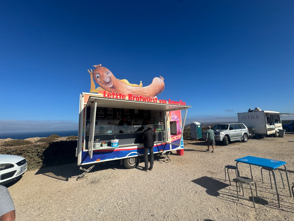 Und noch ein Fun Fact: Direkt am Kap gibt’s tatsächlich „Die letzte Bratwurst vor Amerika“. Eine kleine, kultige Würstchenbude mit Blick auf den Ozean. Der Name ist Programm und ein beliebter Fotostopp.