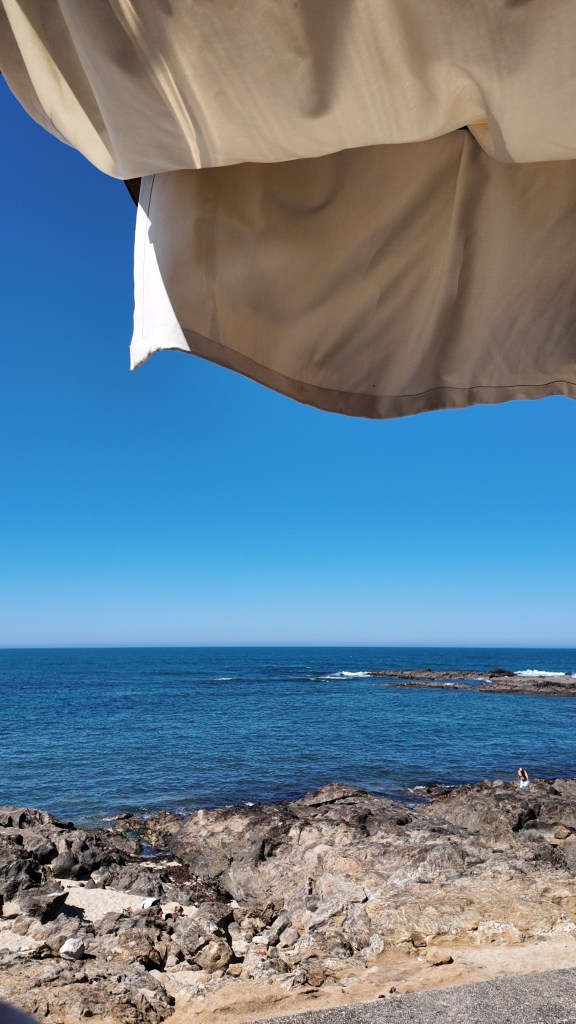 Ich bin von Hamburg nach Porto geflogen, wo sie mich direkt am Flughafen abgeholt hat. Unser erster Stopp? Ganz untypisch: ein Käse-Schinken-Toast am Strand in Bairro da Louça: einfach ankommen, durchatmen, Sonne genießen. Am Strand von Praia do Pinhal dos Eléctricos gab’s dann auch gleich den ersten Sonnenbrand. Ich bin da ganz der Typ „von weiß zu rot“.
