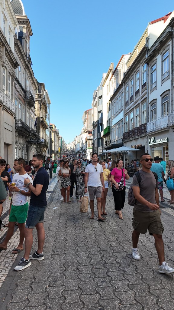 Auf dem Rückweg schlenderten wir noch durch die Gassen rund um die Rua de Santa Catarina, wo sich Straßenbahnen, Menschenmengen und Sonne zwischen den alten Häusern mischen.